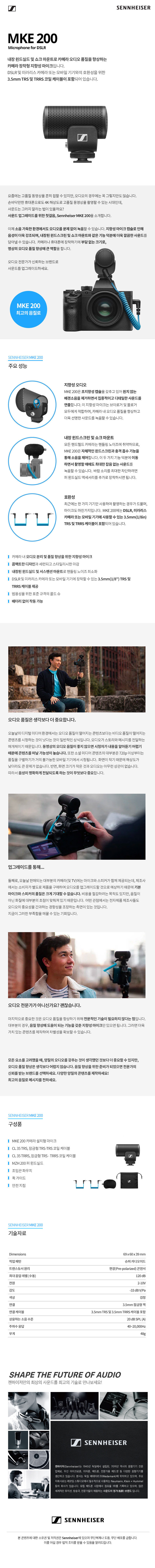 젠하이저 MKE200 카메라 장착형 지향성마이크 3.5mm